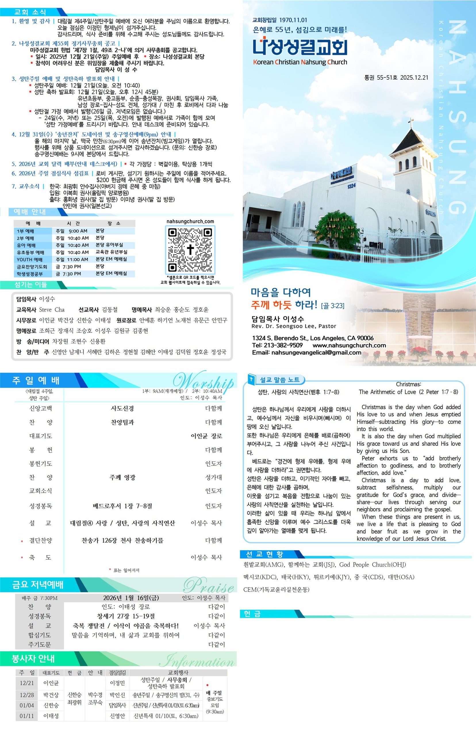 * 일시: 2025년 12월 21일(주일) 주일예배 후 * 장소: 나성성결교회 본당