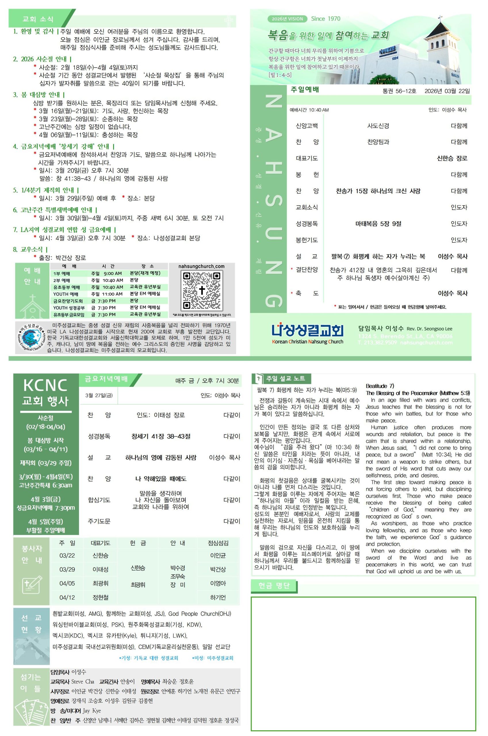 * 장소: 나성성결교회 본당