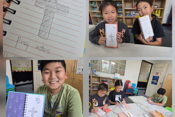 2025년 11월 16일에는 유초등부 친구들이 각자 자신의 기도 노트를 만들어서 기도 제목들을 적어보았습니다. 좋은 것으로 응답하실 하나님을 기대하며, 기도 제목들이 이루어지길 기도했습니다.